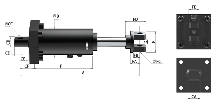 安裝要求:緩沖行程在300mm以內,較大允許側負荷角度為2.5°;緩沖行程為300mm以上,較大允許側負荷角度為1°;確保螺栓螺母鎖緊牢固,建議使用螺紋膠。